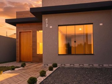 Trata-se de uma linda casa de 2 quartos sendo uma suíte no bairro Estados em Fazenda Rio Grande , ótimo acabamento , tem uma bela estrutura , conta com um jardim de inverno com churrasqueira , uma sala ampla , vaga de garagem .