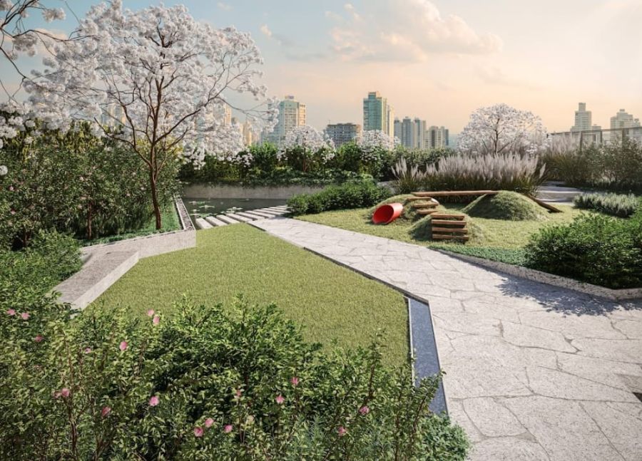 O bem-estar é elevado a um novo patamar através da infraestrutura completa do condomínio. Os moradores têm à disposição uma área de lazer que contempla piscina coberta e aquecida, academia equipada, espaço gourmet, salão de festas e salão de jogos. Para as crianças, o playground e a brinquedoteca oferecem segurança e diversão. O cuidado com os detalhes estende-se ao bicicletário, jardim e às áreas de serviço completas, incluindo dependência de empregada e banheiro dedicado.