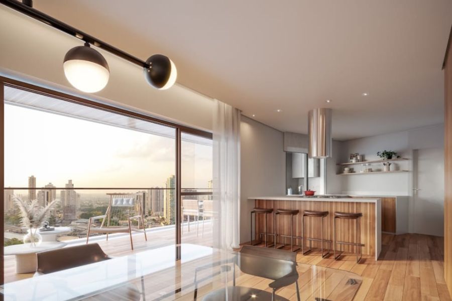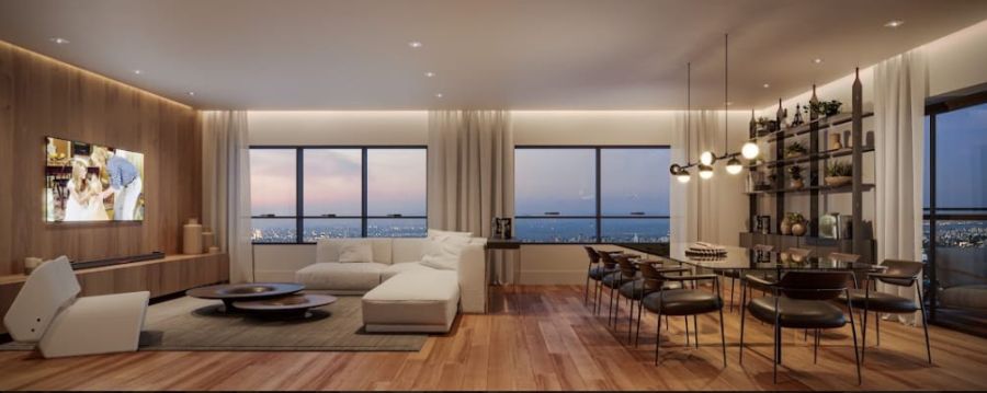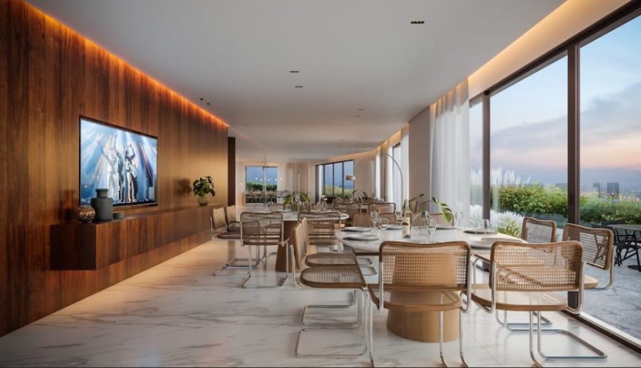 Este apartamento, posicionado no 10º andar, foi projetado para quem busca um refúgio de conforto e elegância. Com uma área privativa de 221,97 m² e área total de 421,32 m², os espaços são generosos e banhados por luz natural. A planta é inteligente e harmoniosa, composta por três suítes amplas que garantem a privacidade e o descanso necessário para a rotina contemporânea. A área social conta com duas salas integradas, ideais para receber amigos ou desfrutar de momentos em família, além de um lavabo e uma sacada com churrasqueira, que proporciona uma vista panorâmica privilegiada da cidade.