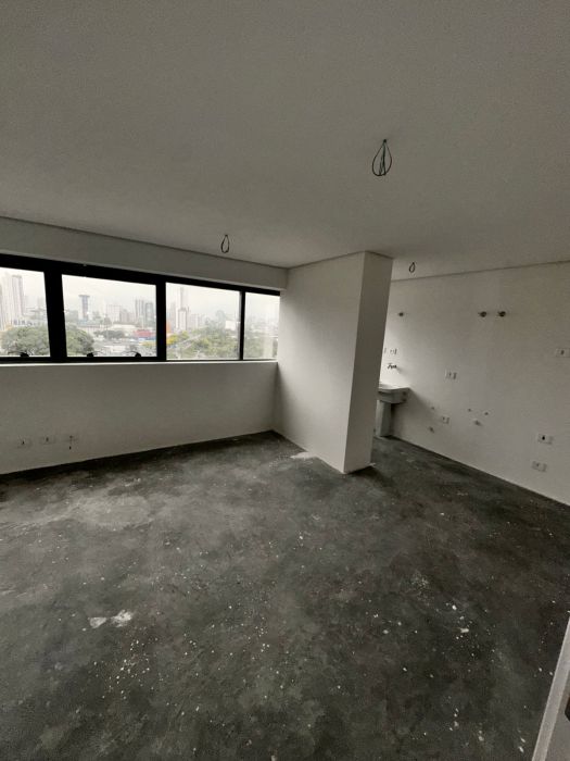 Com uma área privativa de 33,80 m², o apartamento possui uma planta otimizada que compreende um dormitório, sala de estar, banheiro social e área de serviço com sistema de água quente. Um diferencial relevante para unidades compactas na região central é a presença de uma vaga de garagem coberta e privativa, fator que eleva significativamente o potencial de liquidez e valorização do imóvel.