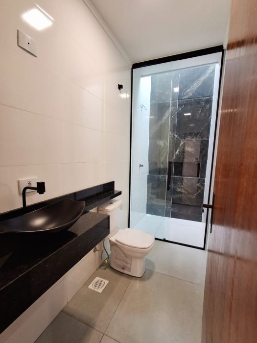 A experiência de morar aqui se estende para a área externa. O jardim traz o frescor da natureza para o cotidiano, enquanto a churrasqueira convida para celebrações e momentos de lazer nos fins de semana. Para maior comodidade, a casa conta com duas vagas de garagem, garantindo segurança e praticidade.